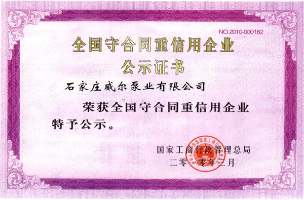 全國守合同重信用企業公示證書